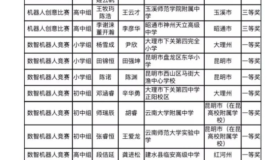 11、第39届云南省青少年科技创新大赛玉溪代表队获佳绩。